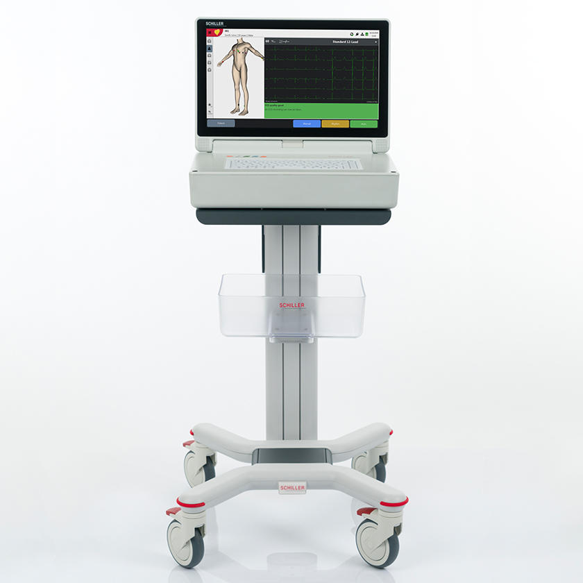 Esta estación de trabajo multiuso combina la pantalla táctil más grande con herramientas clínicas avanzadas. El electrocardiógrafo de gama alta AT-180 de SCHILLER se basa en la nueva plataforma de software de SCHILLER.