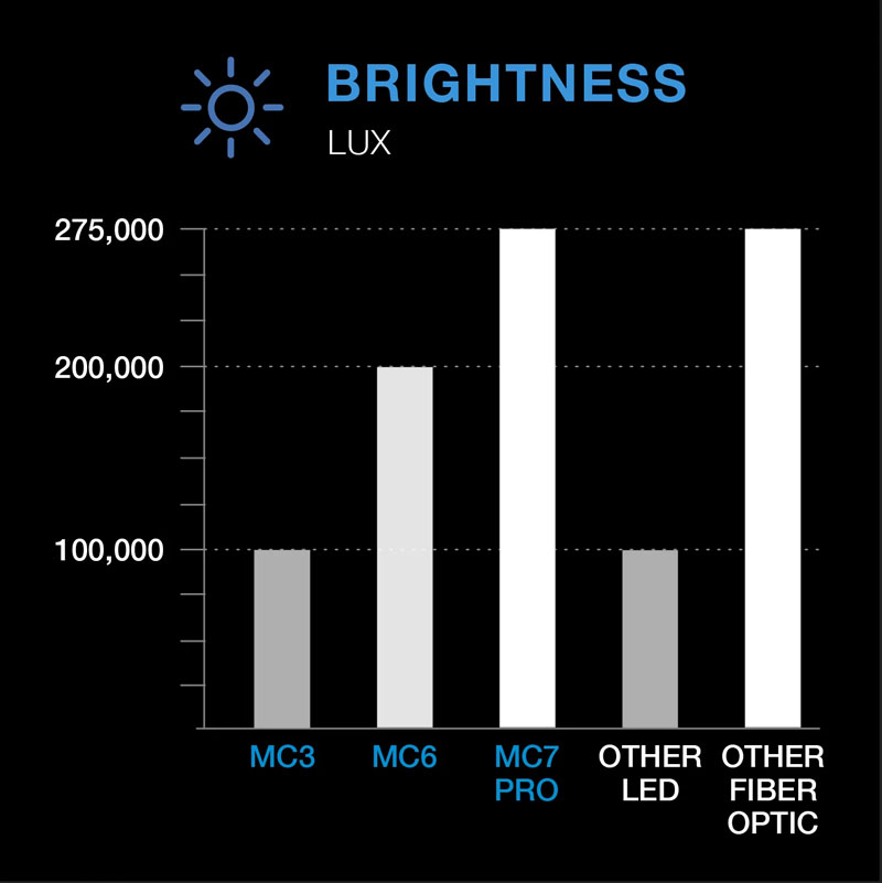 Con intensidades lumínicas de 200.000 LUX, 7 horas de autonomía y un campo visual de 70-90mm MedLED ® Chrome fue diseñado para satisfacer todas las necesidades y tipos de cirugía.
