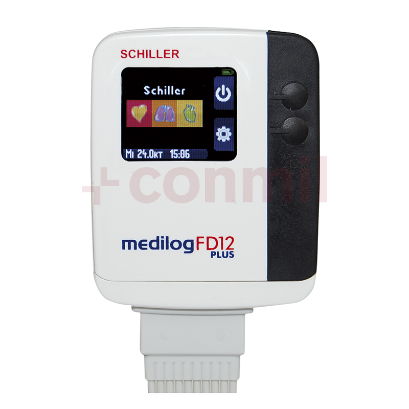 El Medilog FD 12 Plus es un Holter apto para la grabación de ECG de 3 o 12 derivaciones. El grabador está diseñado para una duración de medición de más de 24 horas. La preparación de los electrodos y su conexión debe ser llevada a cabo por un médico o técnico capacitado para la tarea. Durante el proceso de grabación, el dispositivo es cargado en un bolso protector que puede ser unido a un cinturón para reforzar y facilitar su transporte.