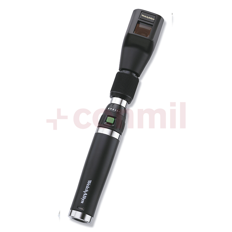Cabezal de retinoscopio de franja con lámpara halógena mezclada con xenón de 3,5 volts. Ajuste de foco externo. Filtro de polarizacion lineal cruzada para evitar el molesto reflejo de la lágrima del paciente hacia el examinador. Tarjetas para retinoscopía dinámica. Operación mediante una sola mano para realizar el foco y la rotación en 360 grados de la franja. Mango recargable de ion litio Ultraliviano, la mitad del peso de los mangos convencionales 120 minutos de duracion de carga (a carga completa) Hecho de resina CYCOLOY, ultraresistente Indicador de batería baja Tecnología de ión Litio sin “efecto memoria” Cargador de mesa Compatible con todos los cabezales de 3,5V de Welch Allyn Incluye batería recargable Incluye cargador normalizado IRAM 220 volts 50 Hz.