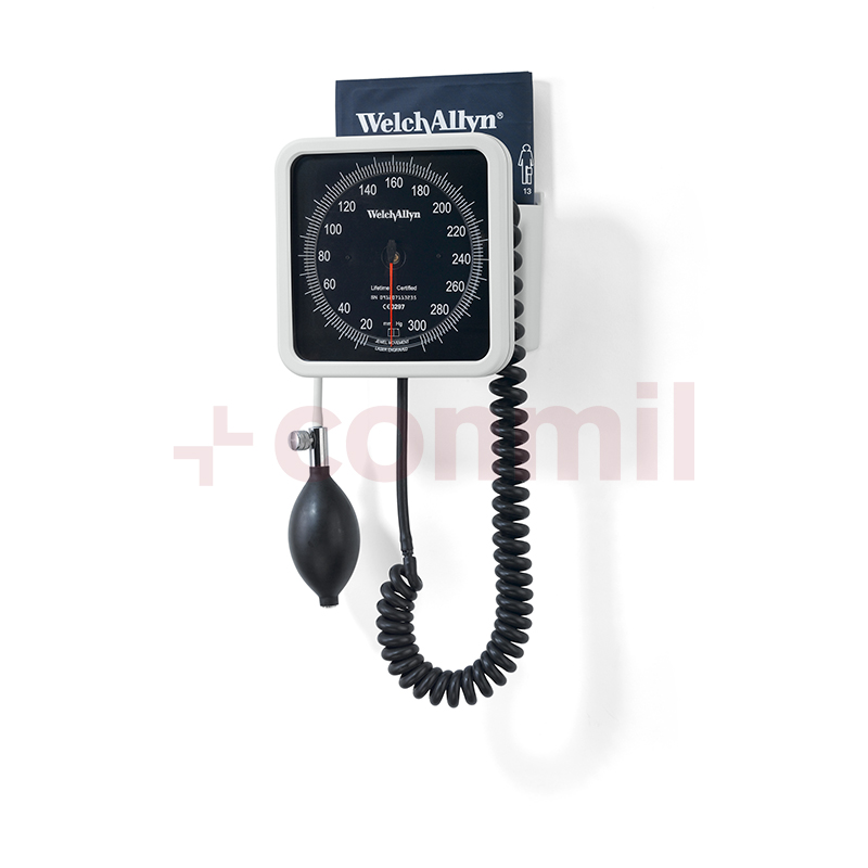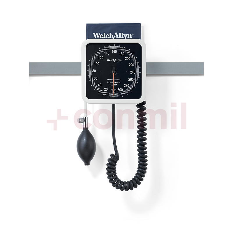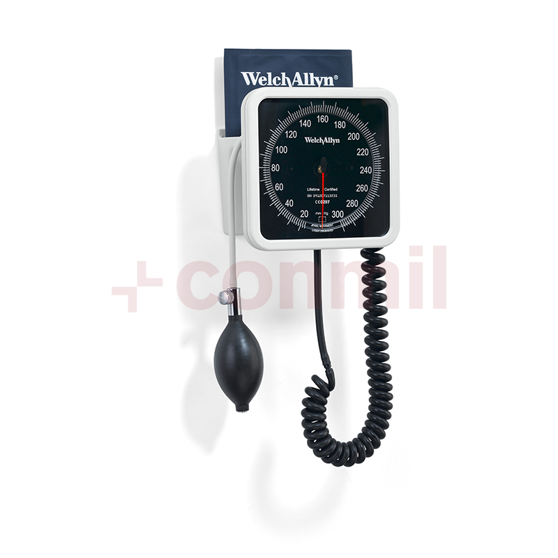Tensiómetro aneroide de pared 767, diseño ergonómico y fácil de usar. El dial grabado con láser asegura una precisión certificada de ± 3 mmHg. Dígitos de mayor tamaño para realizar fáciles lecturas. Disminución de error de paralaje dada la cercanía del marcador y el puntero. Estructura de zinc troquelado resistente que protege el mecanismo.Tubo enroscado de 2,4 metros de largo.