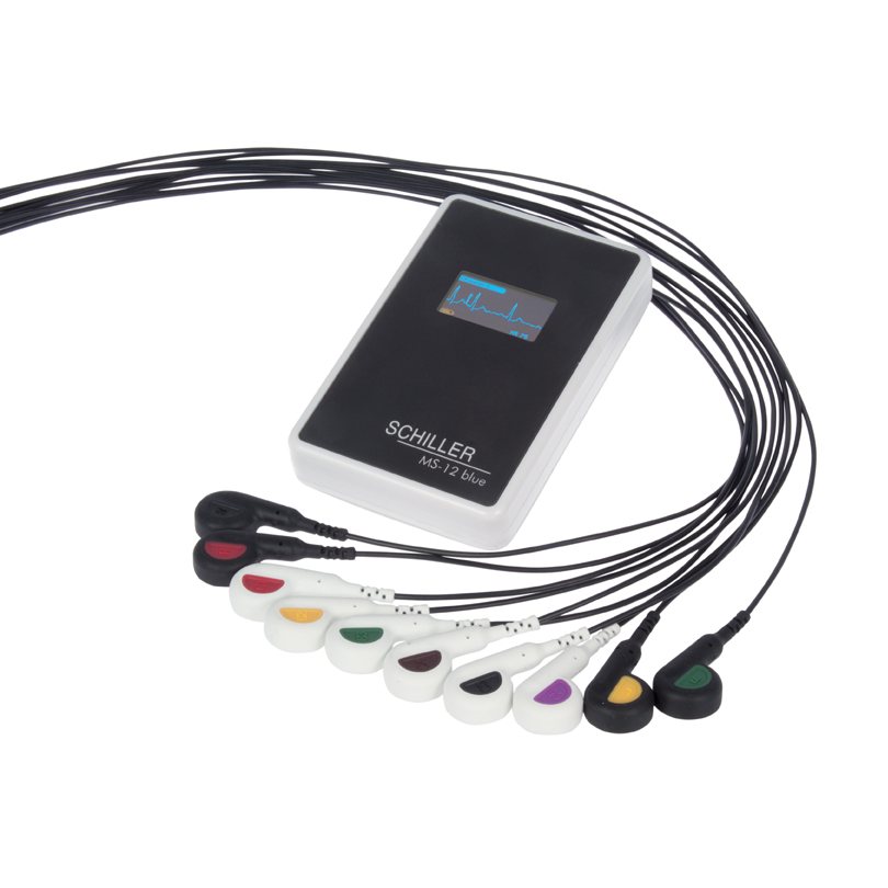 El módulo de adquisición inalámbrico de la marca suiza, que elimina la necesidad de una conexión directa al paciente. Con la introducción del MS-12 Blue, SCHILLER ofrece una nueva solución que simplifica enormemente la adquisición de ECG. Diseñado para brindar la mejor calidad de señal, característica de la marca, también durante las más exigentes pruebas de esfuerzo.
